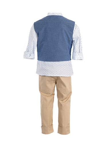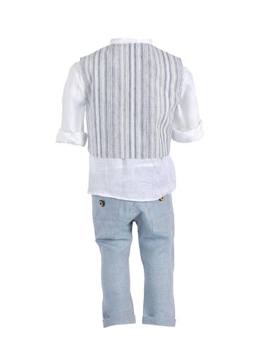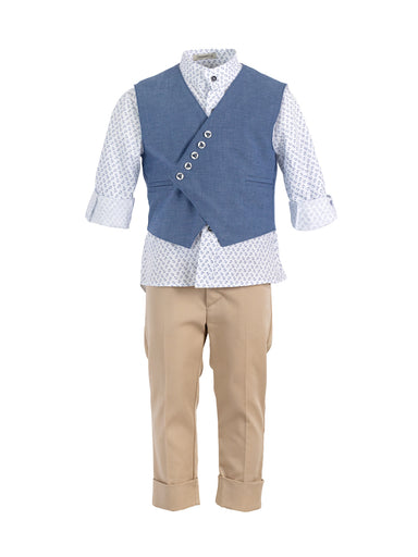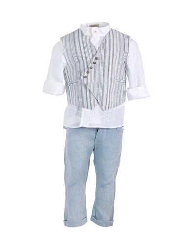 ΕΝΔΥΣΗ ΓΙΑ ΑΓΟΡΙ - ΒΑΠΤΙΣΗ Μοντέρνο σύνολο "Designer's Cat" για αγόρι που αποτελείται από σταυρωτό γιλέκο, από εξαιρετικό λινό ύφασμα μ...