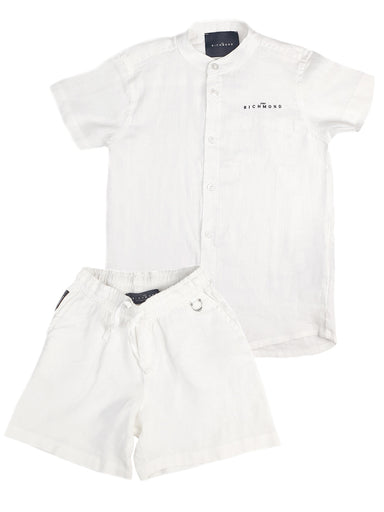 ΕΝΔΥΣΗ ΓΙΑ ΑΓΟΡΙΑ - John Richmond Junior Μοντέρνο λινό σετ, πουκάμισο Μάο με κοντό μανίκι και σορτς με λάστιχο στη μέση. Είναι πολύ άνετο πρακ...
