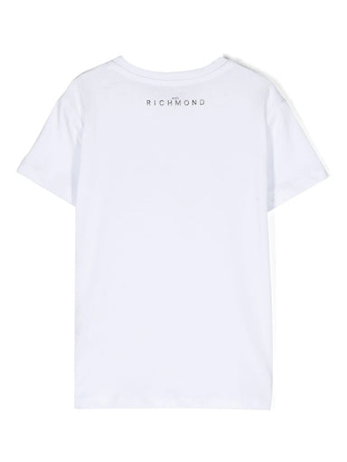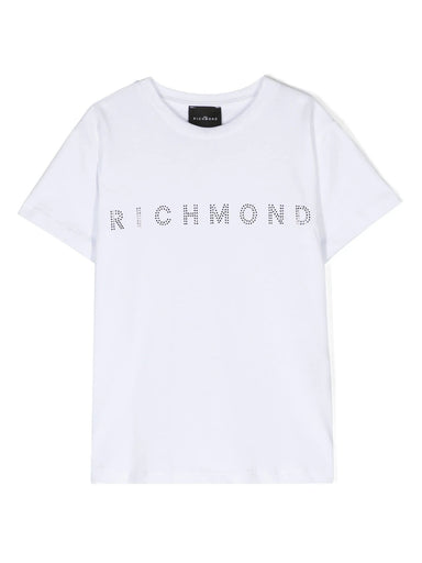ΕΝΔΥΣΗ ΓΙΑ ΑΓΟΡΙΑ & ΚΟΡΙΤΣΙΑ-John Richmond Junior Βαμβακερό t-shirt JR με λογότυπο μπροστά και στρας σε λευκό χρώμα.