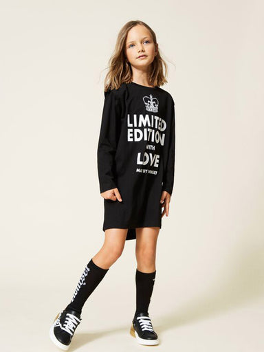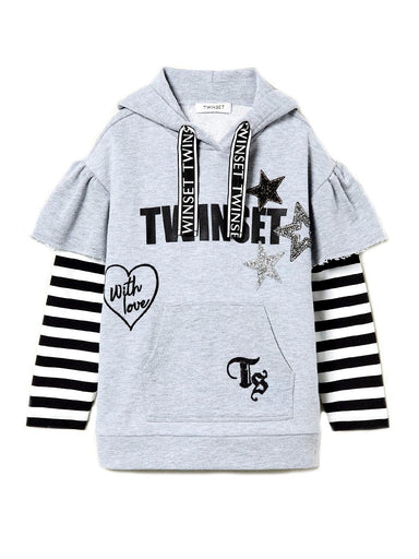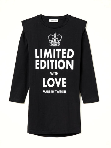 Twinset ΕΝΔΥΣΗ ΓΙΑ ΚΟΡΙΤΣΙΑ Μπλουζάκι από βαμβακερό ζέρσεϊ για κορίτσια με οβάλ λογότυπο T και λογότυπο Twinset με γράμματα, στρογγυλή λαιμόκοψη, μ...