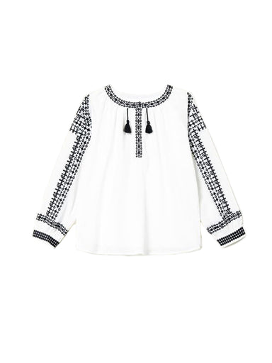 ΕΝΔΥΣΗ ΓΙΑ ΚΟΡΙΤΣΙΑΚομψό μπλουζάκι για κορίτσια από ύφασμα μπουκλέ με βελούδινες λεπτομέρειες, διακοσμημένο με πούλιες και χάντρες. Συνδυάζεται με ...