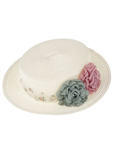 Κομψό καπέλο για κορίτσια, κατασκευασμένο από 100% φυσικό σιτάρι, διακοσμημένο με χειροποίητο λουλούδι.Το καπέλο Kalia συνδυάζεται τέλεια με φoρέμα...