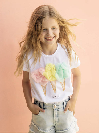 Twinset Αξεσουάρ για Κορίτσια Δίχρωμο ριγέ κασκόλ από αφράτο πλεκτό, με καρφίτσα από τούλι και λογότυπο με γράμματα. Απαλή, ζεστή αίσθηση που ταιρι...