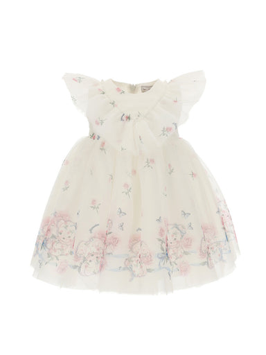 Βρεφικό φόρεμα με floral τύπωμα Ρομαντικό βρεφικό φόρεμα με floral τύπωμα, στρογγυλή λαιμό κόψη,κοντά μανίκια gigot διακοσμημένο με υπέροχο βελού...
