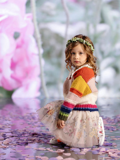 ΕΝΔΥΣΗ ΓΙΑ ΚΟΡΙΤΣΙΑ Κομψό μπέζ φόρεμα από τούλι με πιέτες και μανίκι, διακοσμημένο με βελούδινη ζώνη από λουλούδια. Το φόρεμα είναι επενδεδυμένο με...