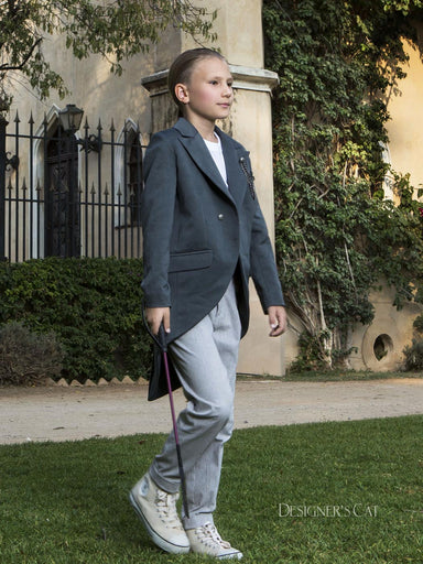Βαπτιστικό κουστούμι για αγόρι . Κομψό κοστούμι σετ 8τεμ. με ιταλική φινέτσα και μοναδικές λεπτομέρειες από υπέροχο βαμβακερό σακάκι με γκρι και μπ...