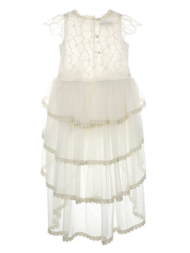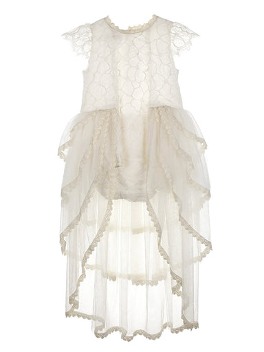 SWEET SPRING Φόρεμα βάπτισης με δαντέλα Ασύμμετρο φόρεμα με εντυπωσιακό μανίκι και λαιμόκοψη, από υπέροχο τούλι με Γαλλική δαντέλα,διακοσμημένο με ...