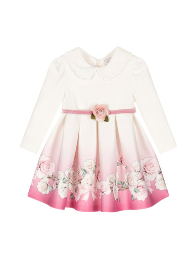 Βρεφικό φόρεμα μπροκάρ με μανίκι από τούλι. Κομψό φόρεμα Brocade μεπιέτες και μακρύ τούλινο μανίκι, από εξαιρετικό ύφασμα με νήματαlurex, στρογγυλή...