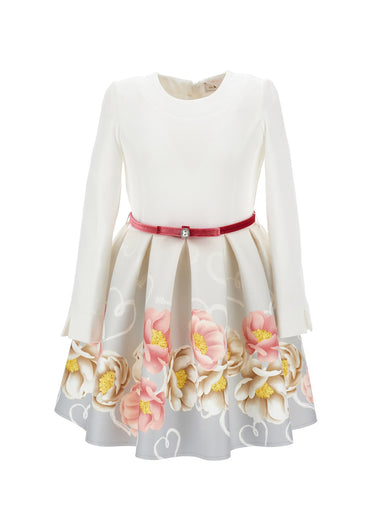 ΕΝΔΥΣΗ ΓΙΑ ΚΟΡΙΤΣΙ – ΒΑΠΤΙΣΗ Designer's Cat - Μοντέρνο φόρεμα σε γραμμή μπαλούν με μακρύ μανίκι, από εκπληκτικό ανάγλυφο ύφασμα με 3D εφέ, διακοσμη...