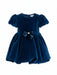 Designer's Cat - Ρομαντικό μπαλούν φόρεμα σε μπλε royal χρώμα, από βαμβακερό βελούδο με κοντά μανίκια gigot, στρογγυλή λαιμόκοψη, φερμουάρ στο πίσω μέρος, διακοσμημένο με υπέροχο φιόγκο και κόσμημα με πέρλα .Μια τέλεια ιδέα για μια ξεχωριστή περίσταση.