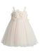 Designer's Cat - Ρομαντικό φόρεμα από τούλι χωρίς μανίκια, διακοσμημένο με υπέροχα χειροποίητα λουλούδια και κρύσταλλα, σε γλυκό nude χρώμα. Στρογγυλή λαιμόκοψη, φούστα με βολάν και εσωτερική επένδυση 100% βαμβάκι. Ένα φόρεμα εξαιρετικής αισθητικής που προσδίδει ρομαντισμό.