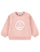 Παιχνιδιάρικο μπλούζακι φούτερ για μικρά παιδιά με σε γλυκό ροζ χρώμα από απαλό οργανικό βαμβάκι με κεντημένο χαμογελαστό πρόσωπο στο μπροστινό μέρος Η μπλούζα έχει ραγκλάν μανίκια, ριμπ στο κάτω μέρος και τα μανίκια και στρογγυλή λαιμόκοψη με δύο κουμπιά στο λαιμό για να είναι εύκολη η εφαρμογή και η αφαίρεση. Συνδυάστε την με το ασορτί παντελόνι για ένα ολοκληρωμένο σετ.