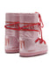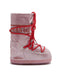 Kids' pink snow boots with glitter, water-repellent, drawstring at top, thermoplastic rubber tread sole and multisided foam lining. It is inspired by the 1969 lunar landing, the inimitable Icon riffs on high-technology astronaut gear.