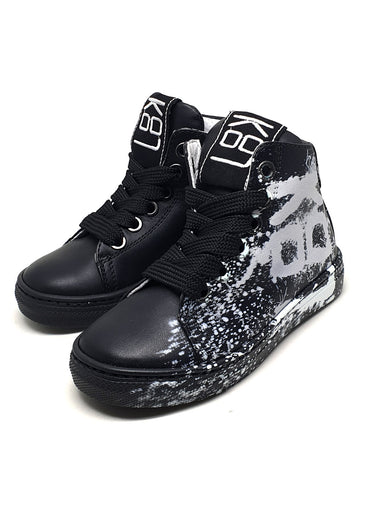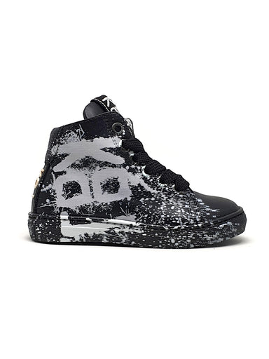 Kid's Boots - 80D1409470 Black boots made of soft faux-fur and suede, decorated with beads, water-repellent, drawstring at top and logo print to th...