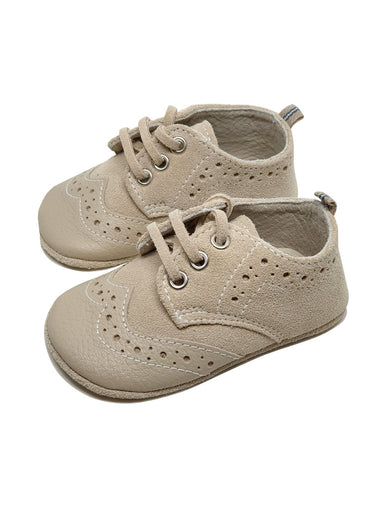 Δερμάτινα μποτάκια μωρού σε καμηλό χρώμα με αντιολισθητική σόλα από καουτσούκ για σταθερό περπάτημα και κλείσιμο με κορδόνια. Η εσωτερική σόλα ακολ...