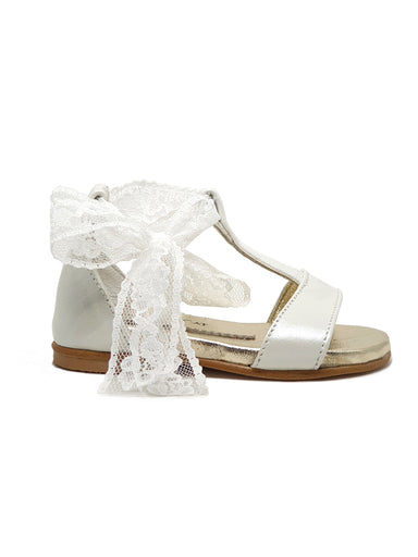 ΠΑΠΟΥΤΣΙΑΓΙΑ ΚΟΡΙΤΣΙΑ – Andanines Δερμάτινα σανδάλια για κορίτσια με φλοράλ δαντέλα απλικέ και λεπτομέρειες από φτερά και πέρλες, πλάκα με λογότυπ...