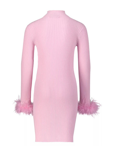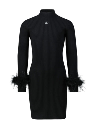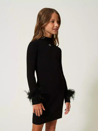 Twinset ΕΝΔΥΣΗ ΓΙΑ ΚΟΡΙΤΣΙΑ Μαύρο κοντό φόρεμα για κορίτσια από σενίλ με ραβδώσεις, με συνθετίκη γούνα, όρθιο γιακά και μανσέτες. Μακριά μανίκια, σ...