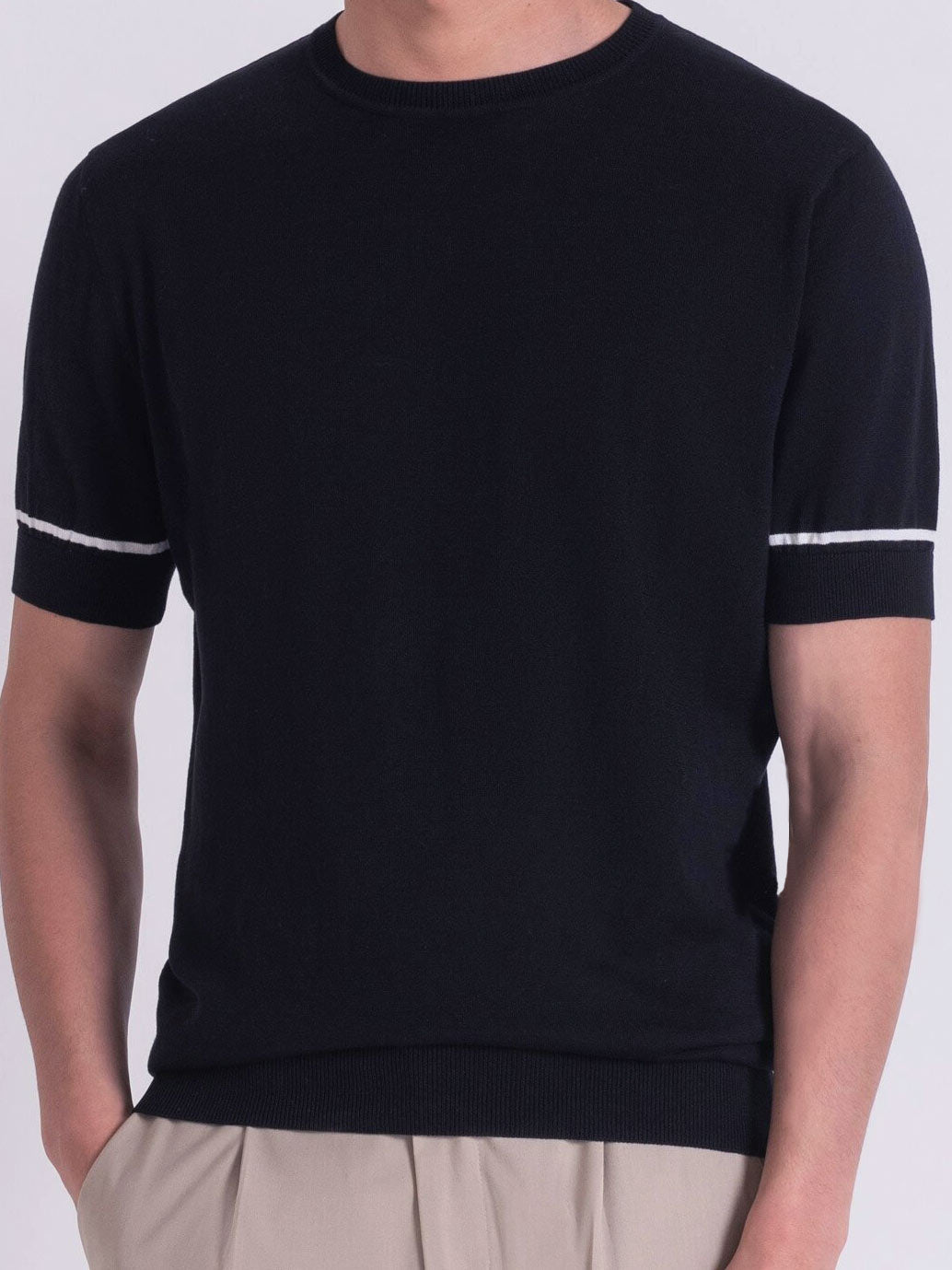 Cotton knitted t-shirt in regular fit, with round neck and elastic waist. It is perfect choice for a casual look that will not go unnoticed.
