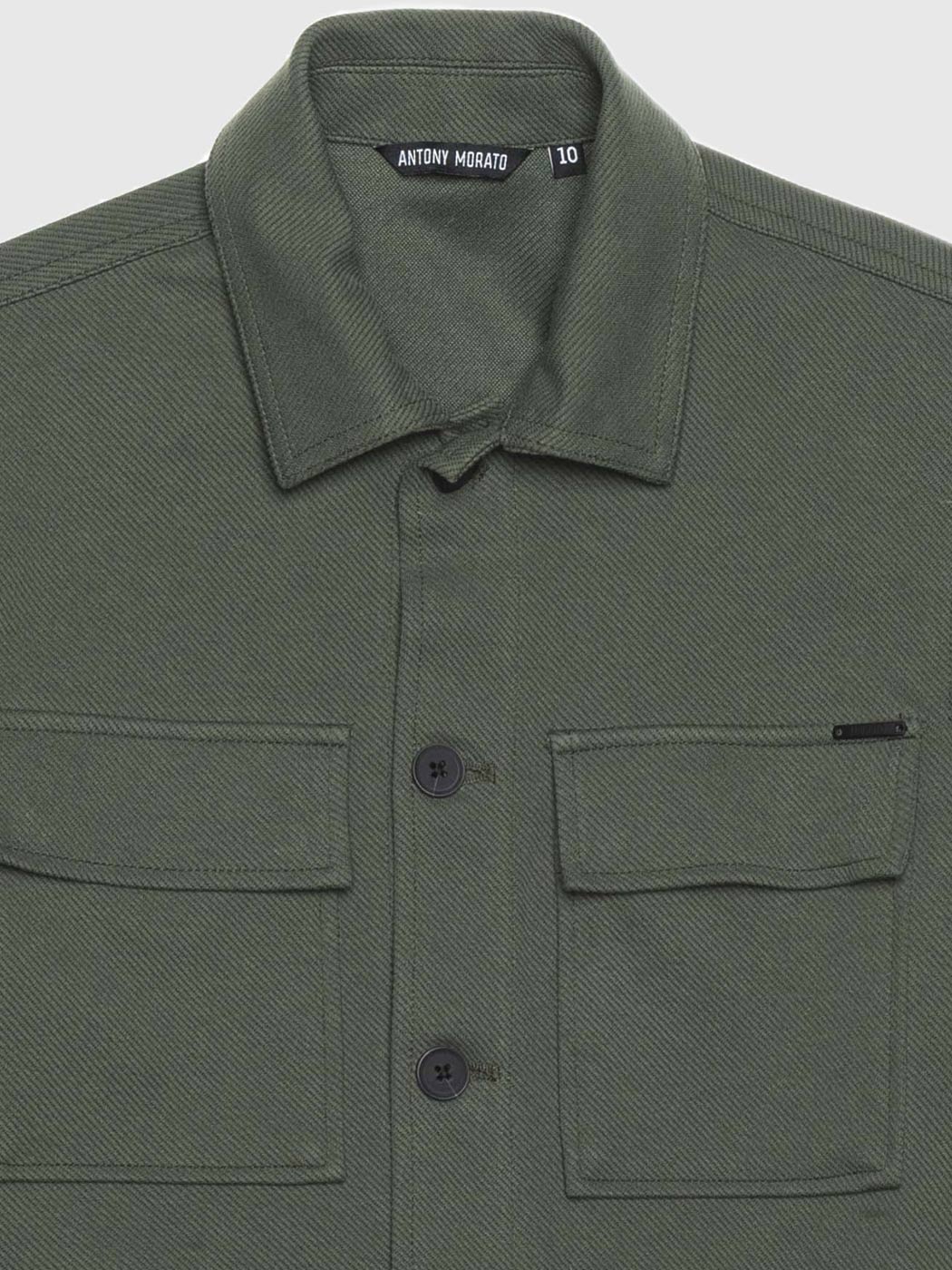 Μοντέρνο πουκάμισο για αγόρι, από ελαστικό βαμβακερό twill, σε ίσιο κόψιμο, με δύο τσέπες με πτερύγια στο στήθος και δύο πρακτικέςπλαϊνές τσέπες. Η πλάκα με το λογότυπο "ΑΜ" ολοκληρώνει το σχέδιο.