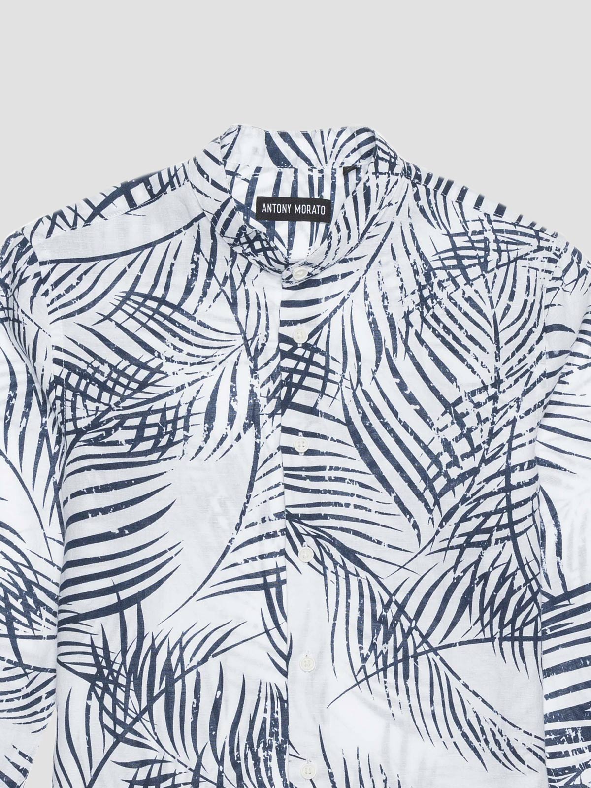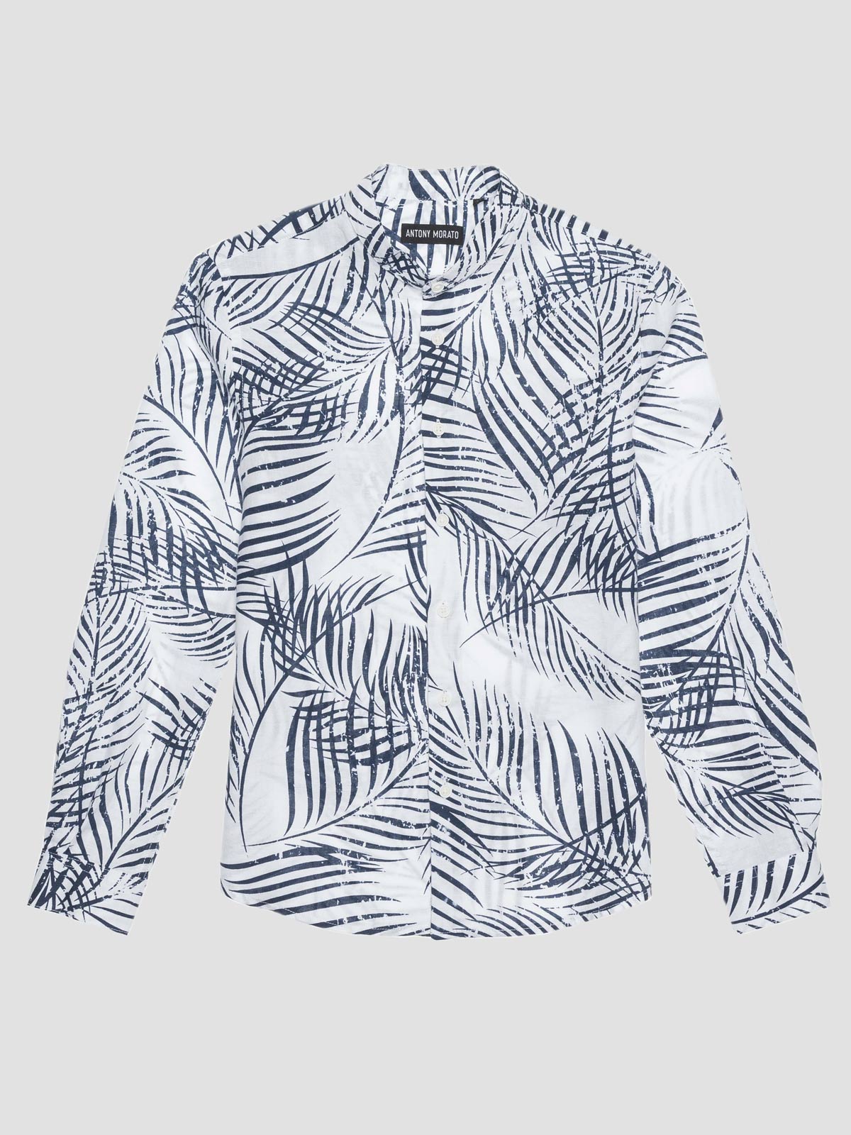 Trendy Seoul slim fit shirt for boy in printed cotton-linen.