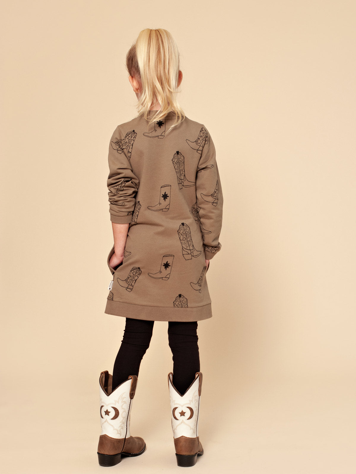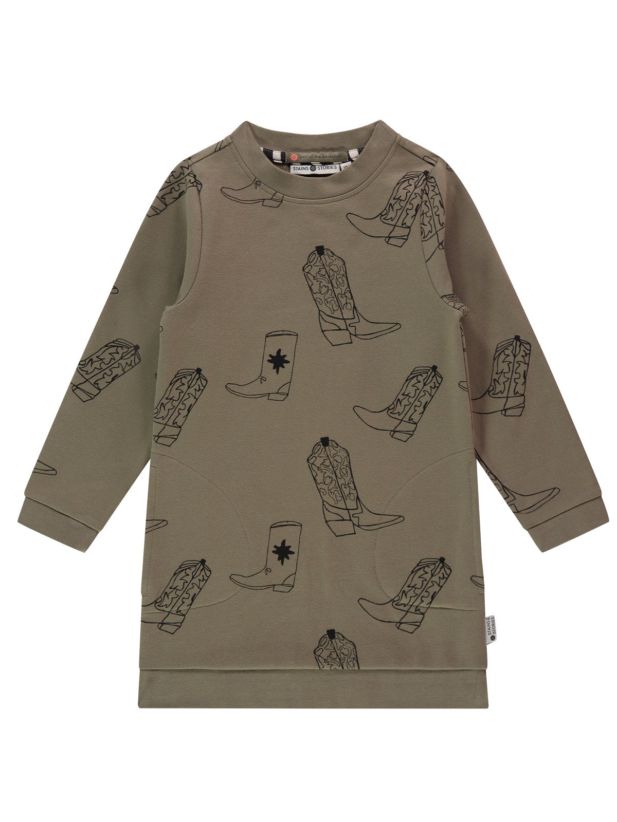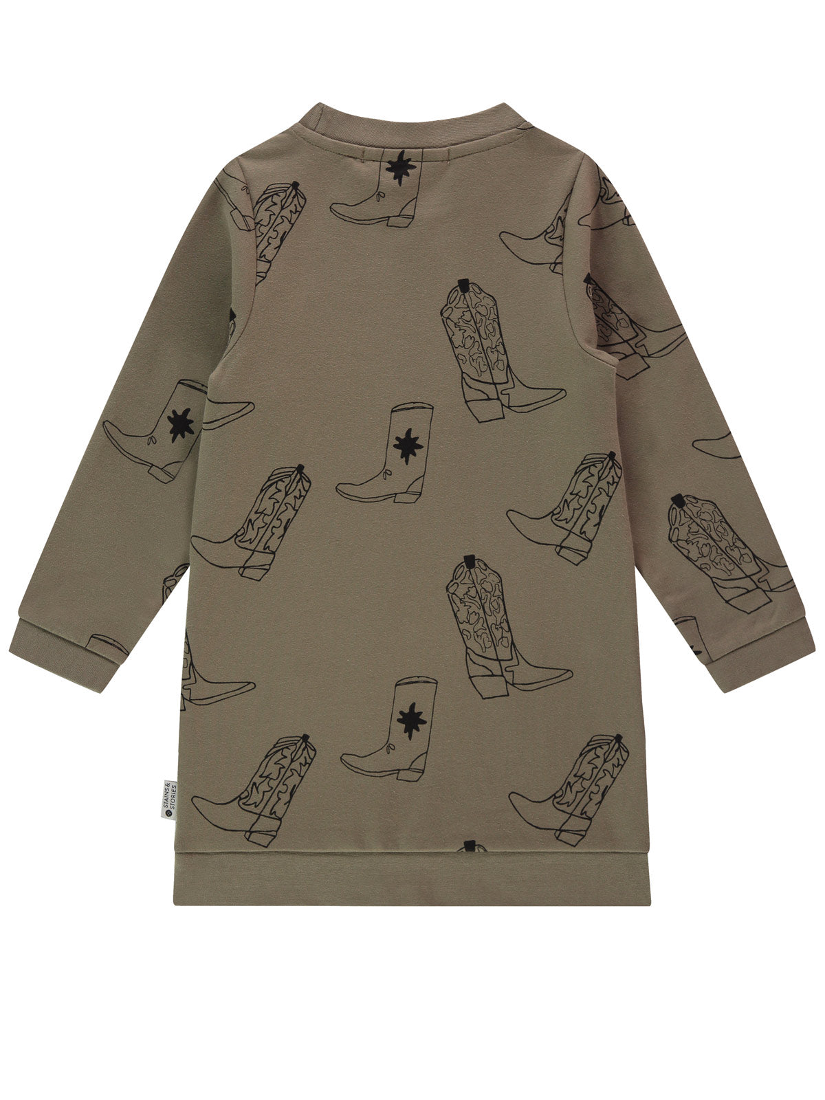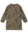 Πρακτικό και άνετο βαμβακερό μακρύ φούτερ-φόρεμα με τύπωμα σε πράσινο στρατιωτικό χρώμα, με στρογγυλή λαιμόκοψη και δύο πλαϊνές τσέπες.