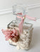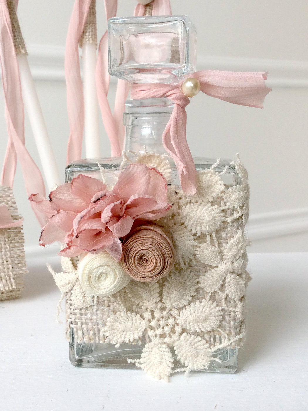 Λαδοσέτ 5 τεμ. (1 μπουκάλι για το λάδι, 3 κεριά & αρωματικό σαπούνι) διακοσμημένο με κιπούρ δαντέλα, ασορτί κορδέλες και χειροποίητα μεταξωτά λουλούδια σε αποχρώσεις του ροζ και εκρού. Συνδυάζεται άψογα με το αντίστοιχο φόρεμα βάπτισης της συλλογής Designer's Cat.