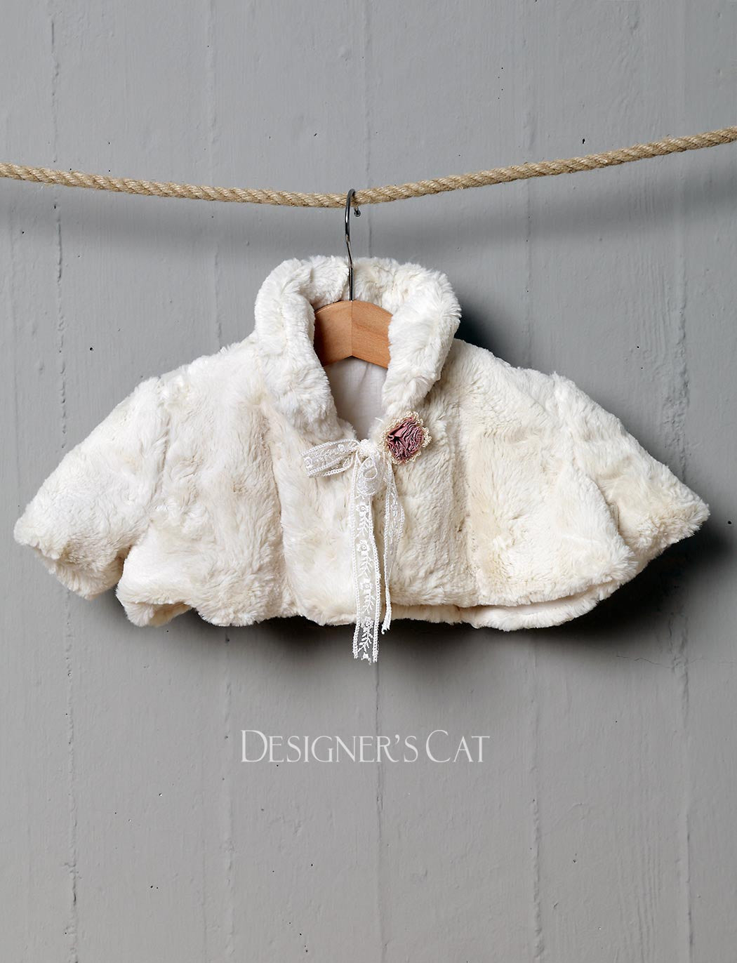 Μπολερό από αφράτη οικολογική γούνα Faux με μανίκι ,διακοσμημένο με δαντελένιες τρέσες. Εσωτερικά είναι επενδυμένο με 100% βαμβακερό ύφασμα. Συνδυάζεται ιδανικά με τα περισσότερα φορέματα των συλλογών "Designer’s Cat winter collection".
