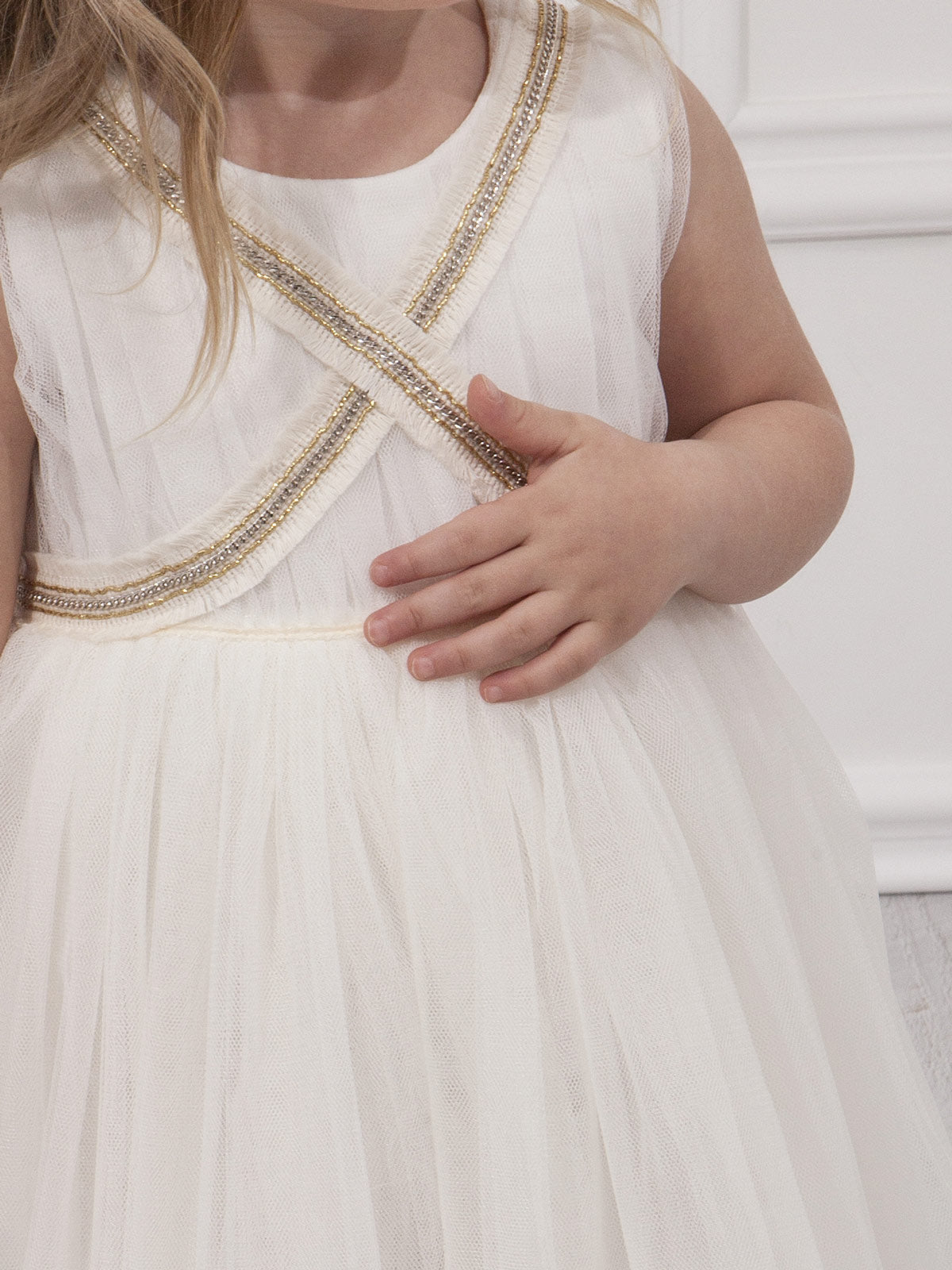 Τούλινο φόρεμα για κοριτσάκια με χρυσές λεπτομέρειες-ANTHEMIS