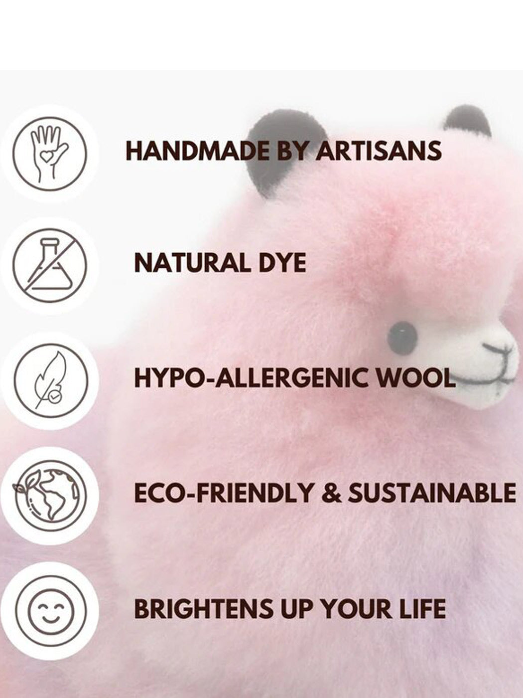 Τα πιο εκλεκτά μαλακά παιχνίδια κατασκευασμένα από φυσικό μαλλί αλπακά, καθιστώντας τα όχι μόνο ακαταμάχητα απαλά αλλά και φιλικά προς το περιβάλλον. Τα μαλακά παιχνίδια Inkari alpaca είναι απαλλαγμένα από επιβλαβείς χημικές ουσίες και βαφές. Ετοιμαστείτε να εκπλαγείτε από την απαράμιλλη απαλότητα του μαλλιού αλπακά. Γνωστό για την πολυτελή υφή του, το μαλλί αλπακά δημιουργεί την πιο βελούδινη και απίστευτα απαλή αφή, παρέχοντας άνεση και χαρά σε όποιον τα κρατάει.