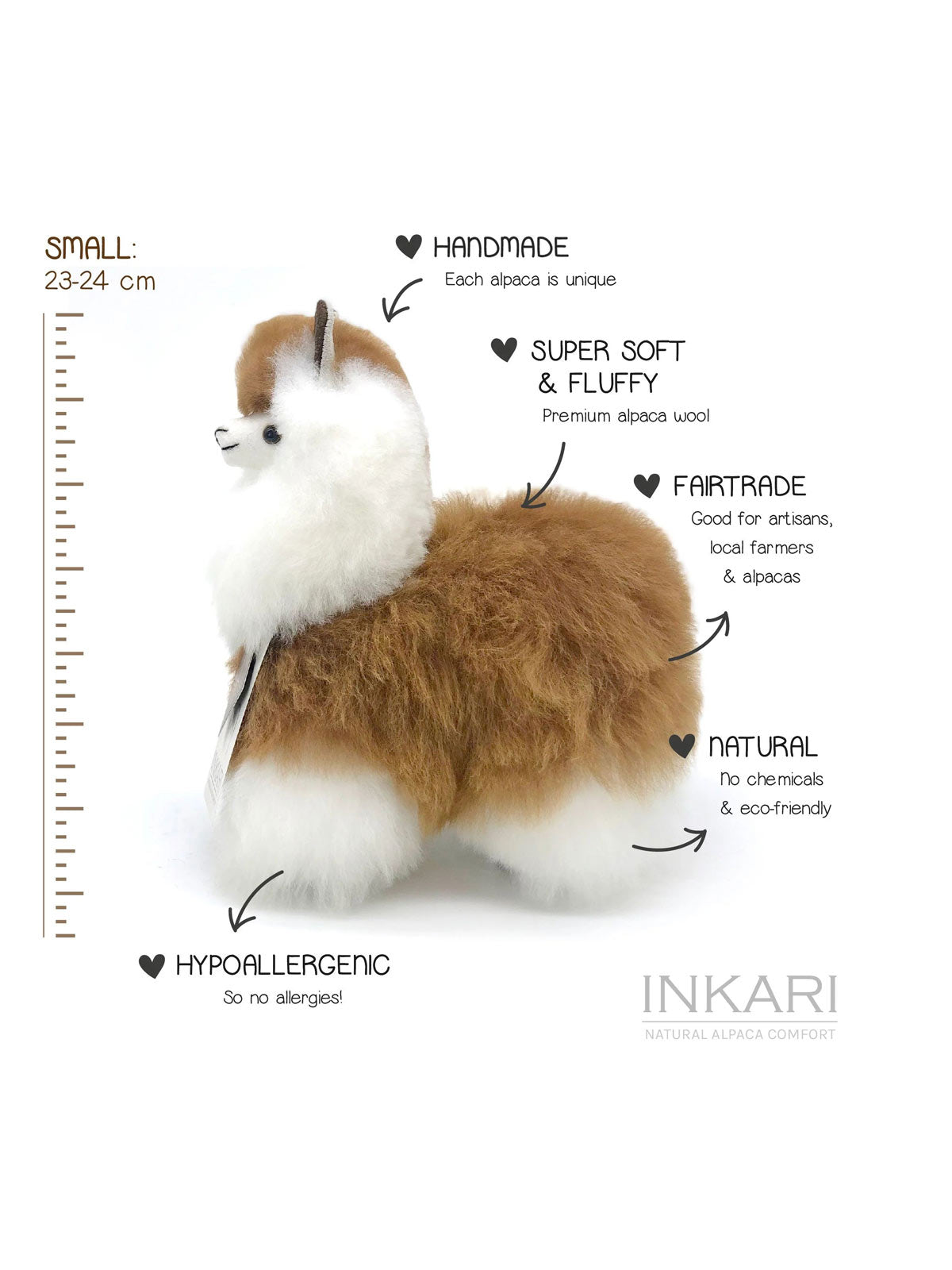 Τα πιο εκλεκτά μαλακά παιχνίδια κατασκευασμένα από φυσικό μαλλί αλπακά, καθιστώντας τα όχι μόνο ακαταμάχητα απαλά αλλά και φιλικά προς το περιβάλλον. Τα μαλακά παιχνίδια Inkari alpaca είναι απαλλαγμένα από επιβλαβείς χημικές ουσίες και βαφές. Ετοιμαστείτε να εκπλαγείτε από την απαράμιλλη απαλότητα του μαλλιού αλπακά. Γνωστό για την πολυτελή υφή του, το μαλλί αλπακά δημιουργεί την πιο βελούδινη και απίστευτα απαλή αφή, παρέχοντας άνεση και χαρά σε όποιον τα κρατάει.