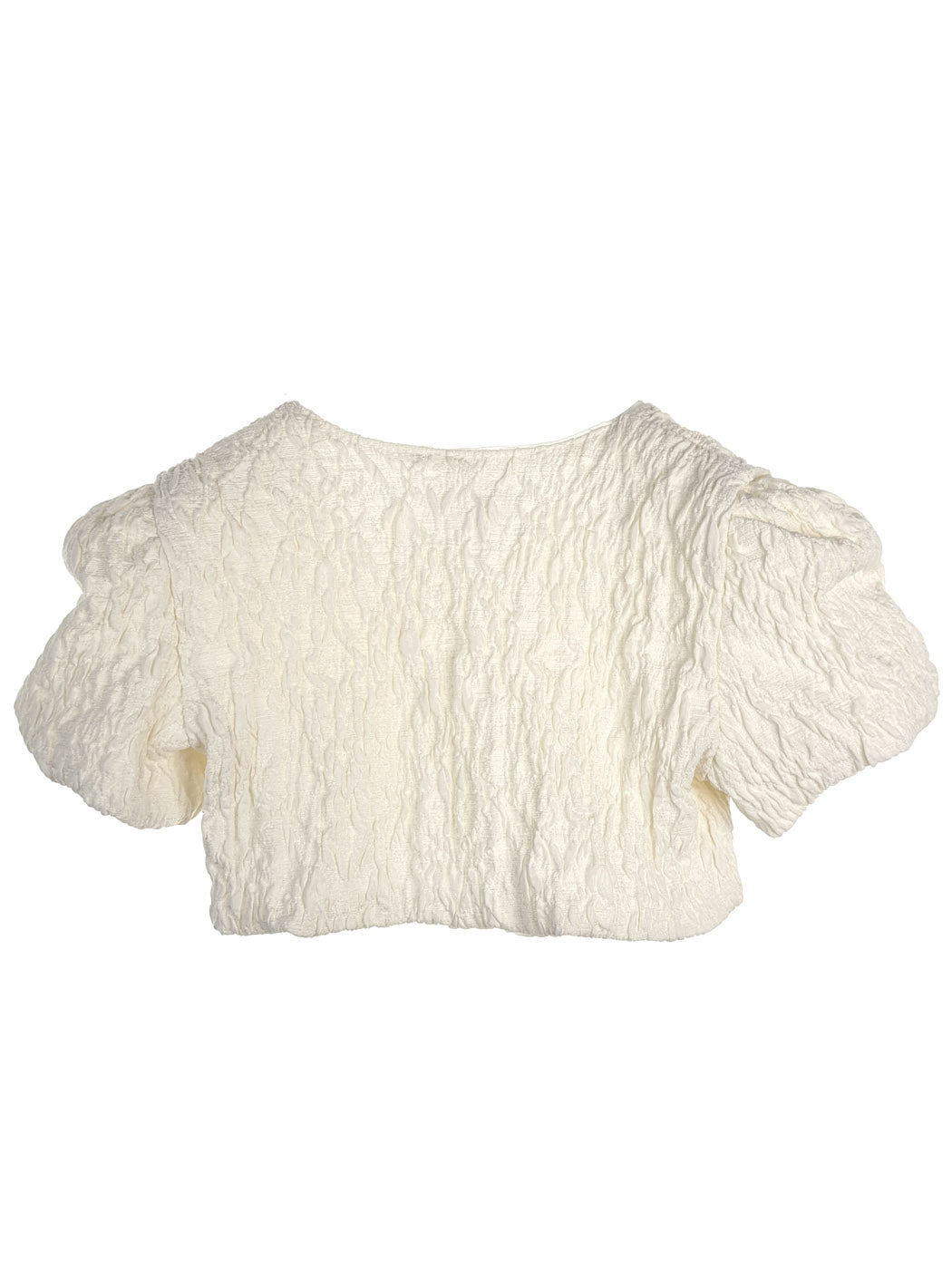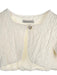 Κομψό μπολερό με φουσκωτό μανίκι,φτιαγμένο από σύμμικτο wrinkled ύφασμα,διακοσμημένο με κουμπί Swarovski. Η εσωτερική επένδυση είναι 100% βαμβάκι. Ένα όμορφο τοπ, ιδανικό για ιδιαίτερες περιστάσεις όπως η βάπτιση. Μπορεί νασυνδυαστεί με ασορτί φορέματα από τη συλλογή «Designer’s Cat». Χρώμα: Off white