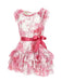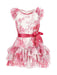 Εντυπωσιακό χαμηλόμεσο τούλινο φόρεμα με botanical print, στρογγυλή λαιμόκοψη με βολάν μανίκια, διακοσμημένο με σατέν κορδέλα ζώνη. Είναι μια τέλεια επιλογή για ειδικές περιστάσεις