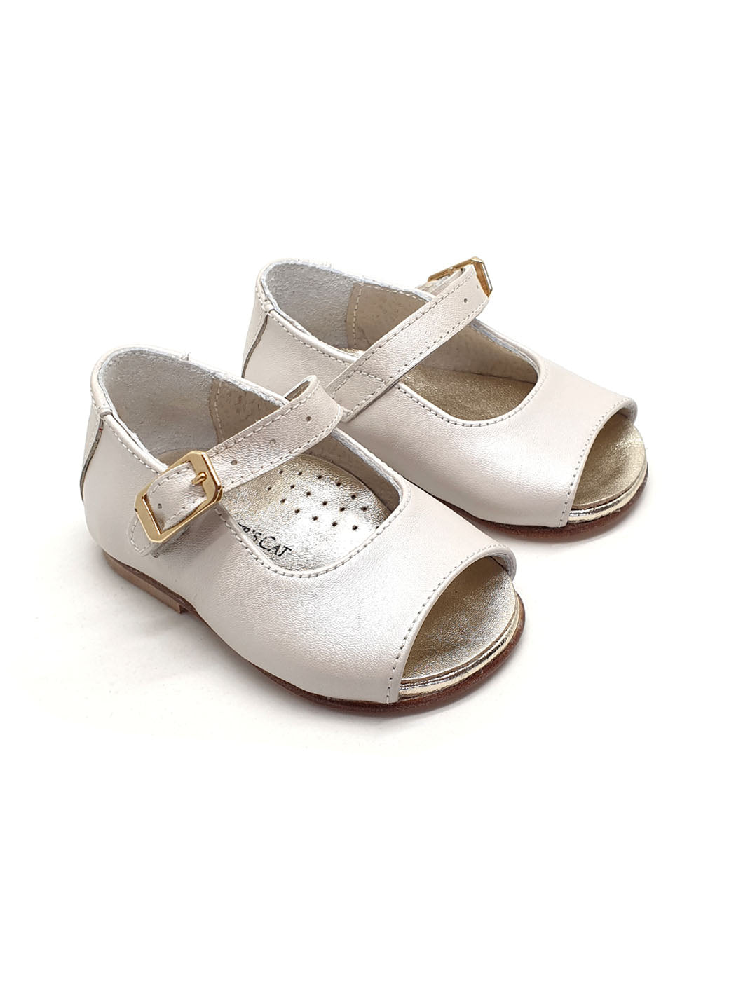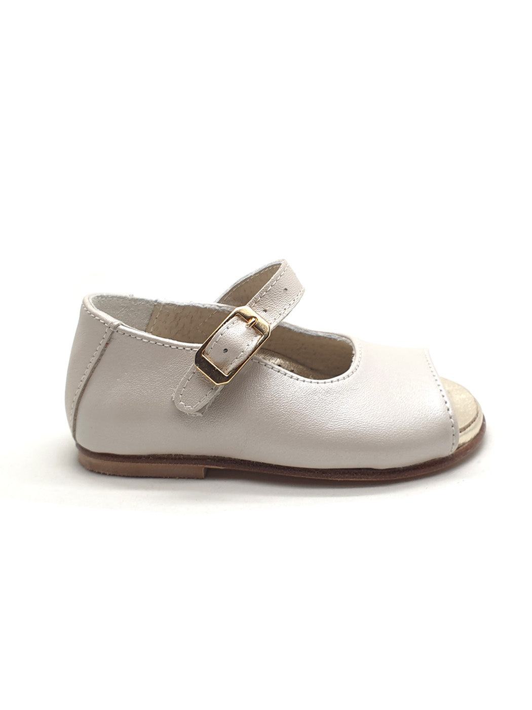 PEEP TOE δερμάτινα βαπτιστικά παπούτσια με λουράκι σε κρεμ χρώμα,για κορίτσι