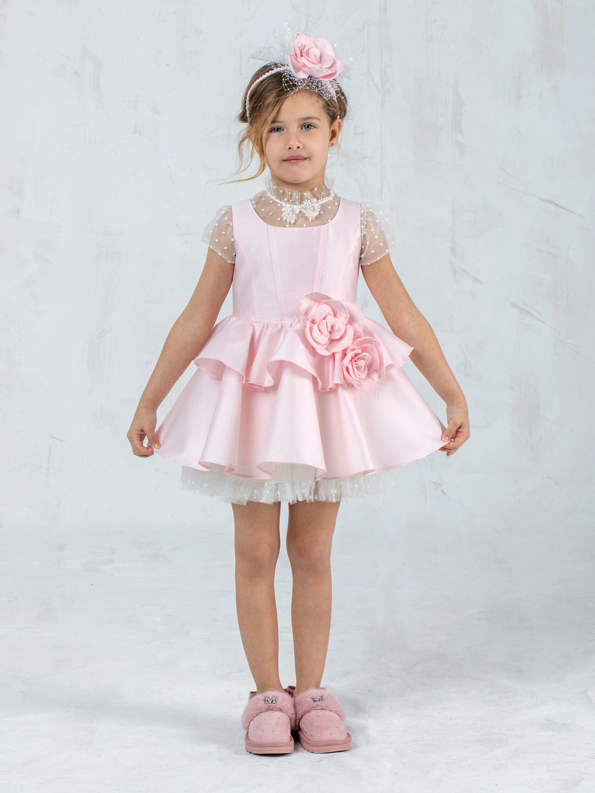 Μεταξωτό φόρεμα Βάπτισης με τούλι πουα - GALINA