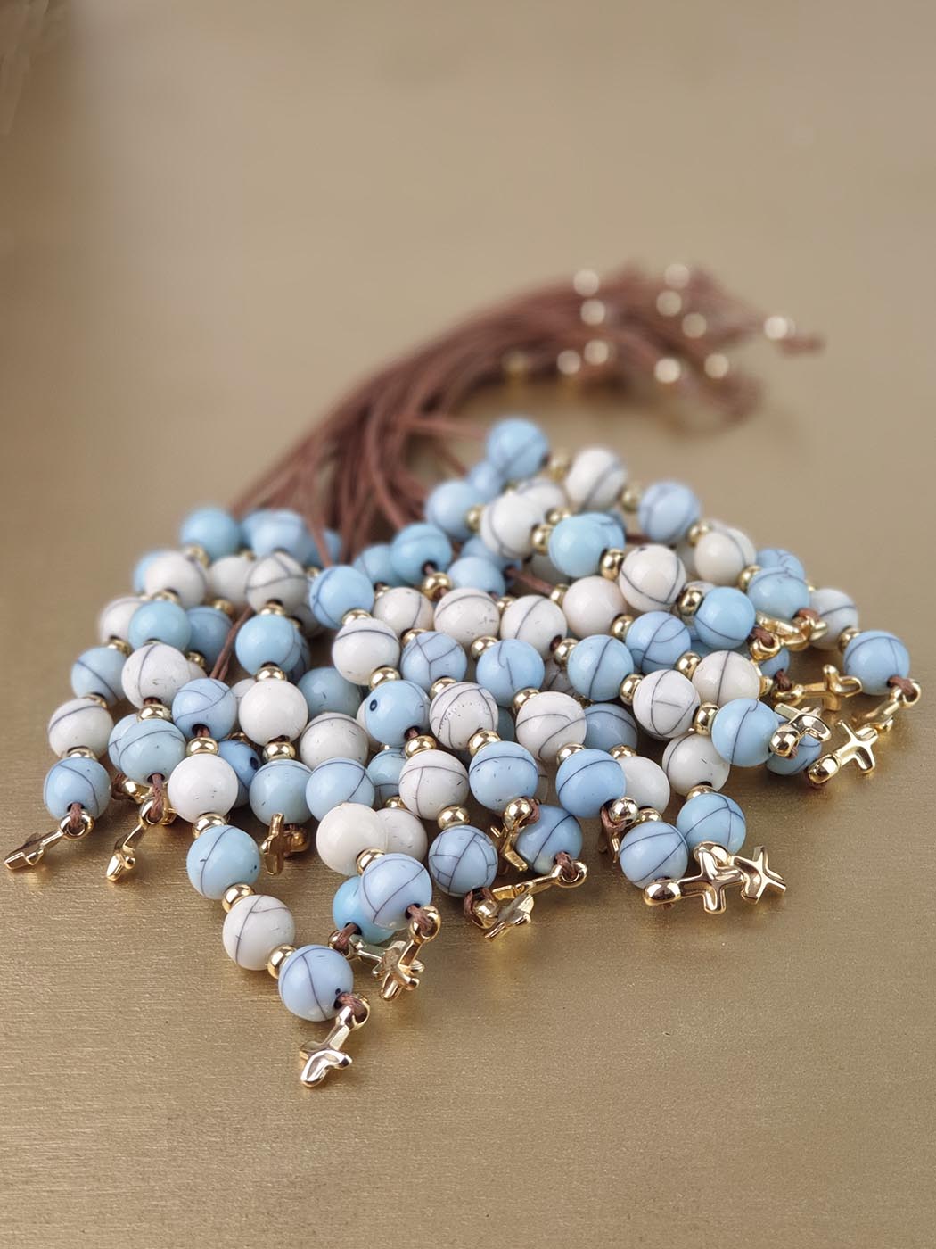 Χειροποίητο μαρτυρικό βάπτισης "Μπεγλέρι" DESIGNER'S CAT, με σταυρό σε χρυσό χρώμα διακοσμημένο με υπέροχες χάντρες.