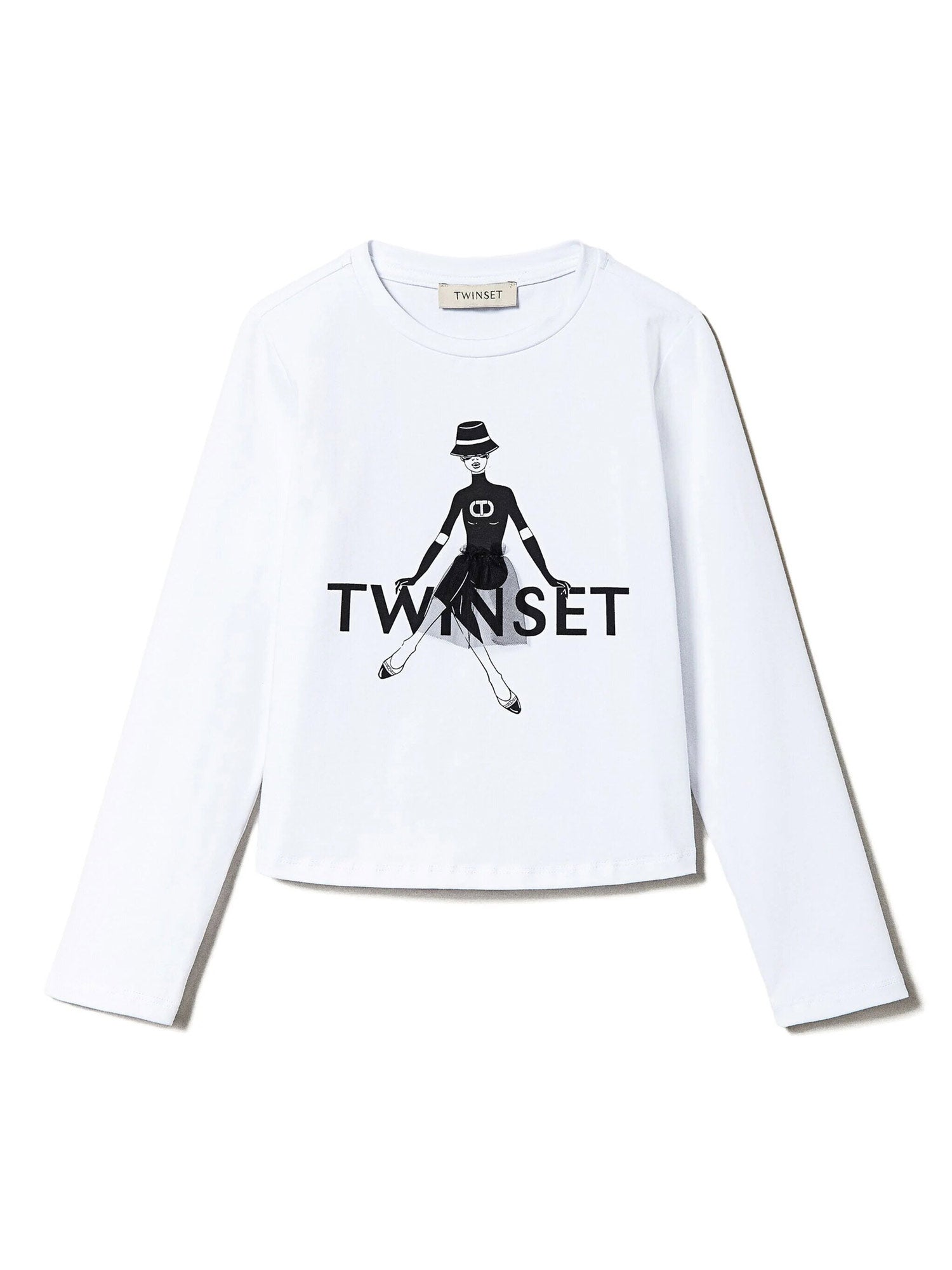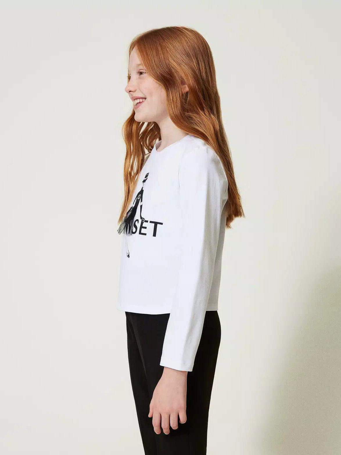 Twinset- κοριτσίστικο μπλουζάκι με λογότυπο και γκλίτερ