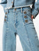 Μοντέρνο τζιν για κορίτσια, με διακοσμητικά κουμπιά Oval T, κούμπωμα με φερμουάρ και κουμπί, μπροστινές κάθετες ραφές, φαρδύ πόδι.