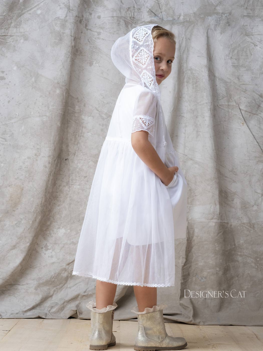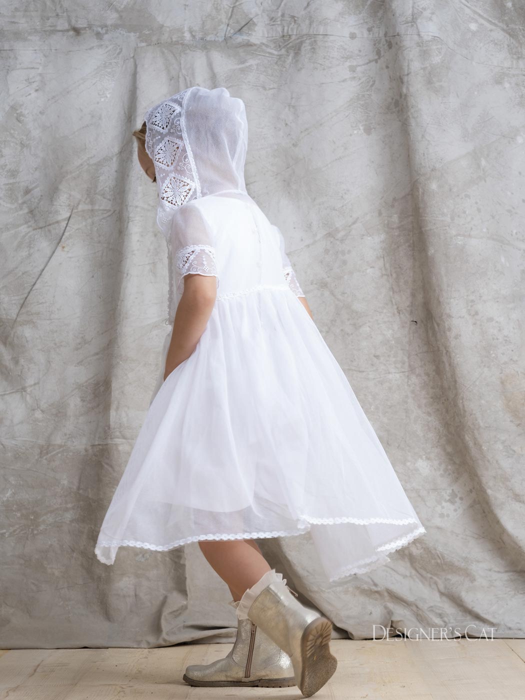 Αέρινο σύνολο 2 τεμ. (ζιπ-κιλότ + τουνίκ), από εξαιρετικό σύμμεικτο ύφασμα βαμβάκι και μετάξι. Το μπούστο είναι διακοσμημένο με υπέροχη Γαλλική δαντέλα από γεωμετρικά μοτίβα. Το τουνίκ είναι διακοσμημένο με ωραία κουκούλα της ίδιας δαντέλας. Το σύνολο Vicky μπορεί να συνδυαστεί με αξεσουάρ μαλλιών και παπούτσια από τη συλλογή "Designer'sCatShoes". Διαθέσιμα μεγέθη: από 1 έως 12 ετών σε Λευκό χρώμα.