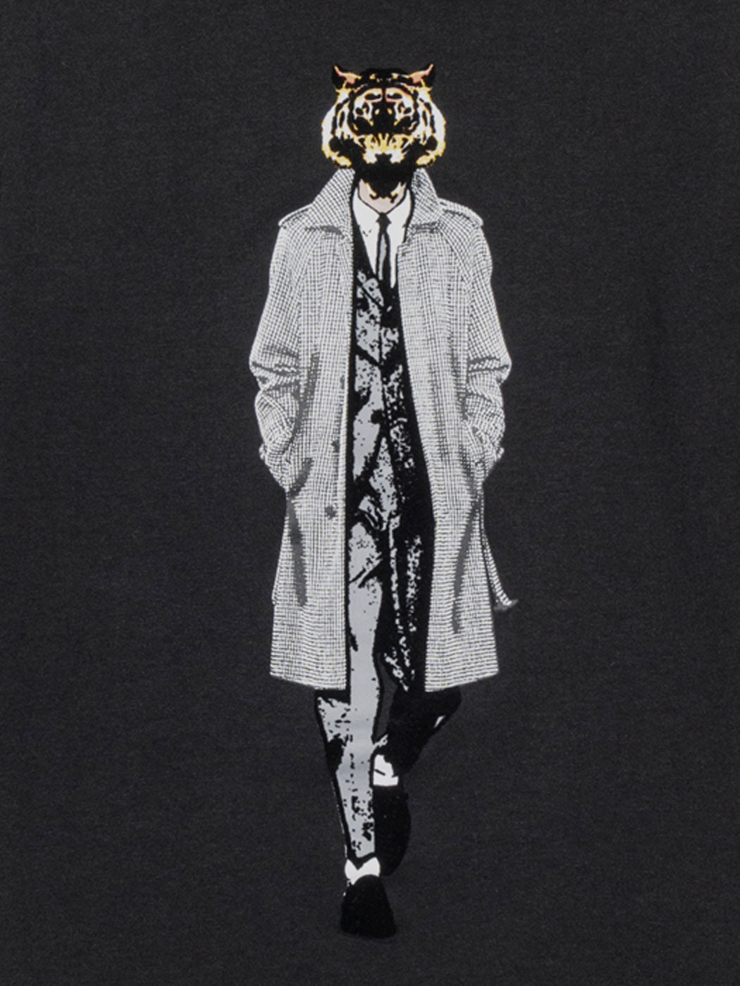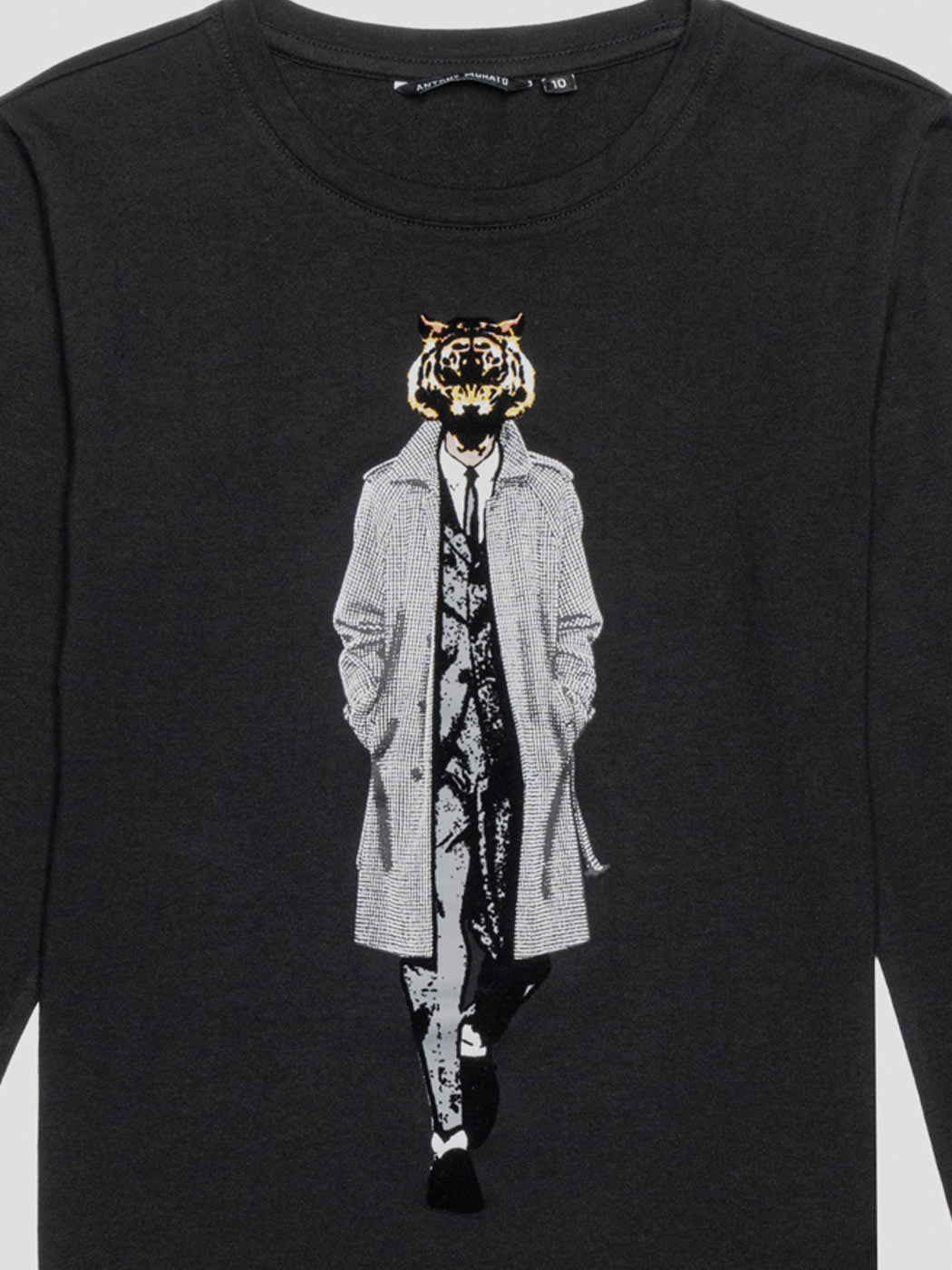Trendy cotton long sleeve t-shirt with embossed velvet print at front and round neckline in black color. It can be combined perfect with denim pants, shorts, jacket, completely changing the boy's style.