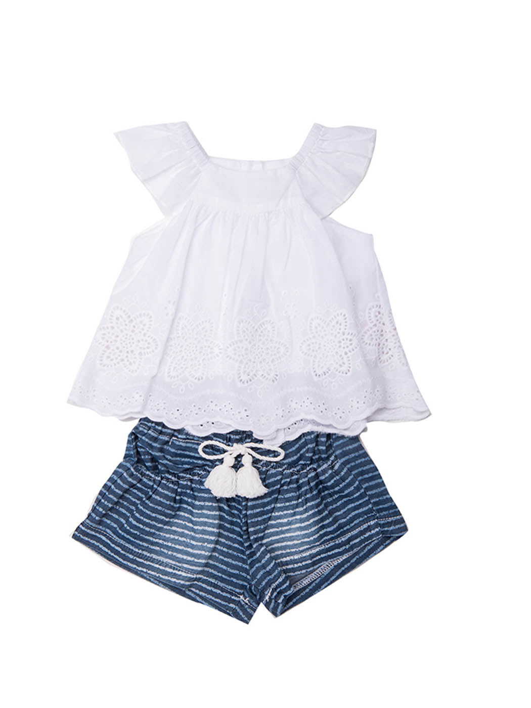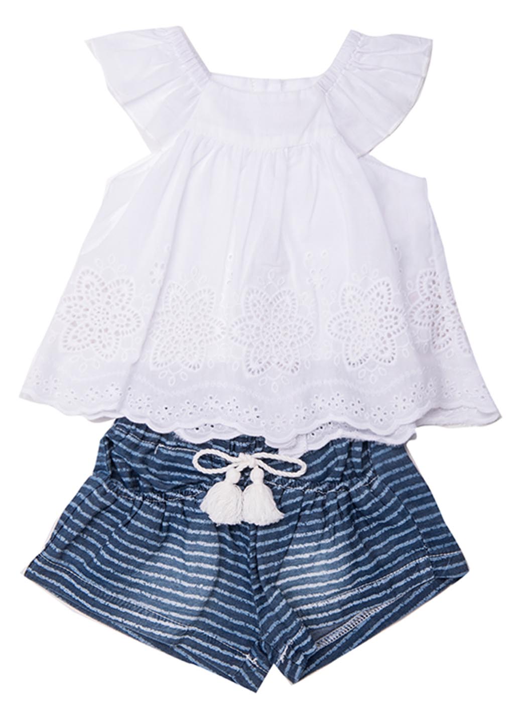 Baby outfit set 2pcs, shirt-dress and shorts, made in soft cotton decorated with lovely print .