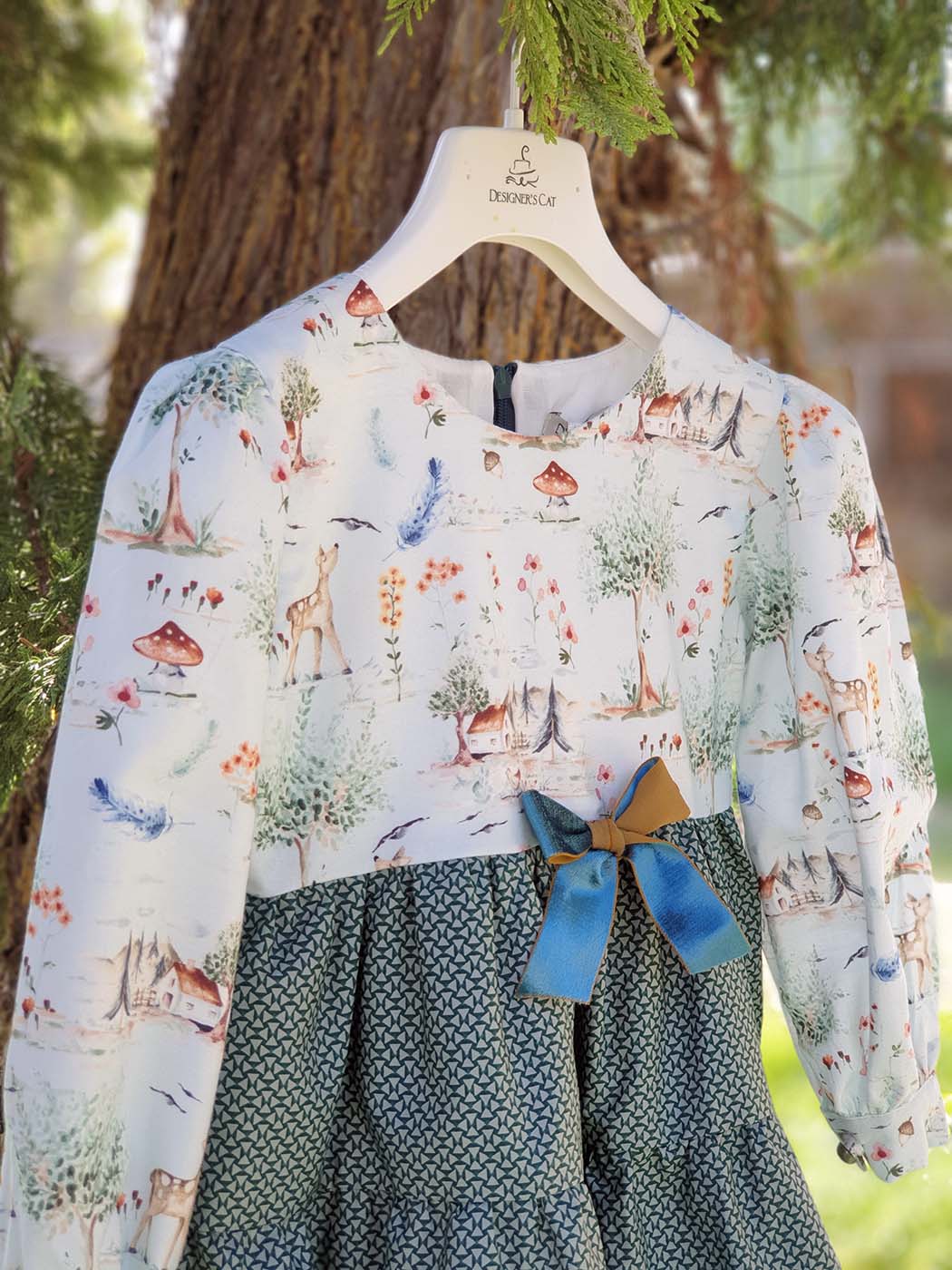 An elegant dress with lovely print made of excellent 100% cotton fabric, with sleeve. Inner lining is 100% cotton. A wonderful gift for the little ladies. It can also be combined perfectly with a matching jacket and shoes from the "Designer's Cat Shoes" collection. Available in sizes from 2 to 10 years old.