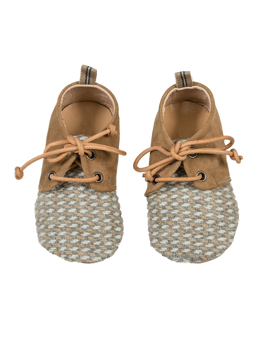 Handmade crib shoes made entirely of excellent quality leather both externally and internally, in the inner lining, insole and outsole. Designed for any occasion. They match perfectly with outfits for boys from the DESIGNER'S CAT collection and are available in 16-17 and 18-19 sizes.
