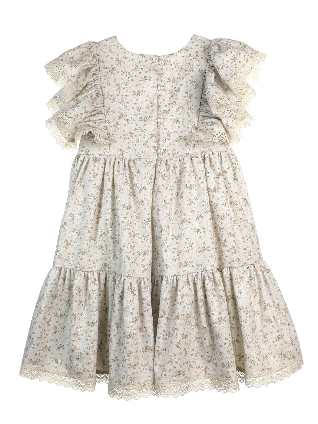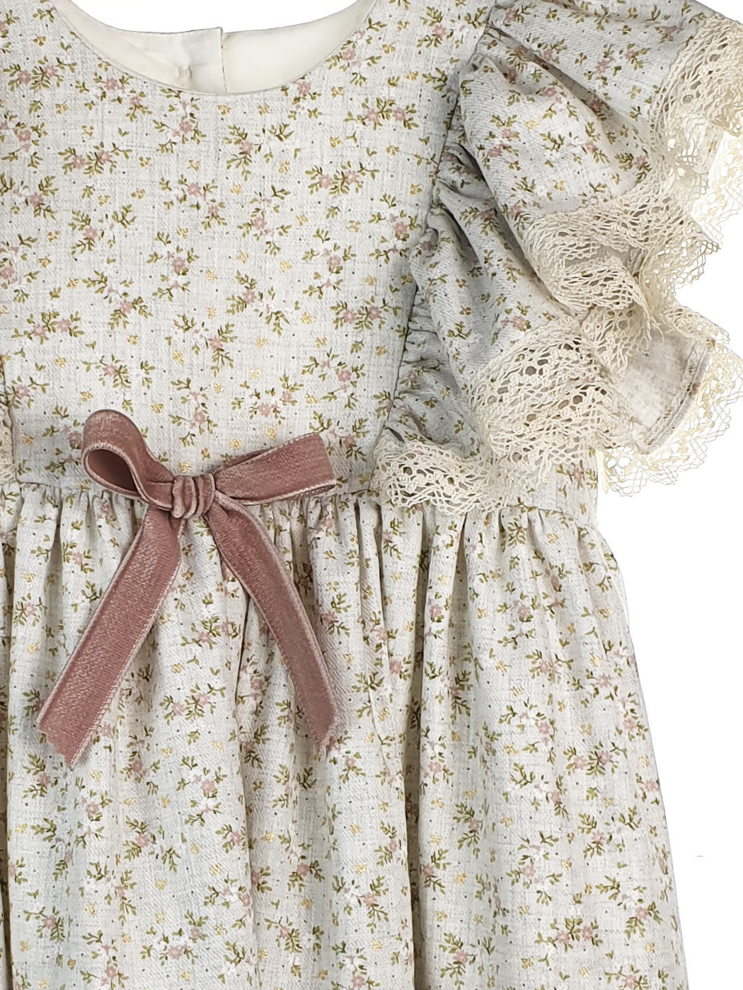 Romantic dress by Designer's Cat, made of excellent cotton fabric with floral print, crew neck, gathered wing sleeves, decorated with nice velvet bow. This dress provides comfort and flexibility in every occasion and with the right accessories, compose a complete look.