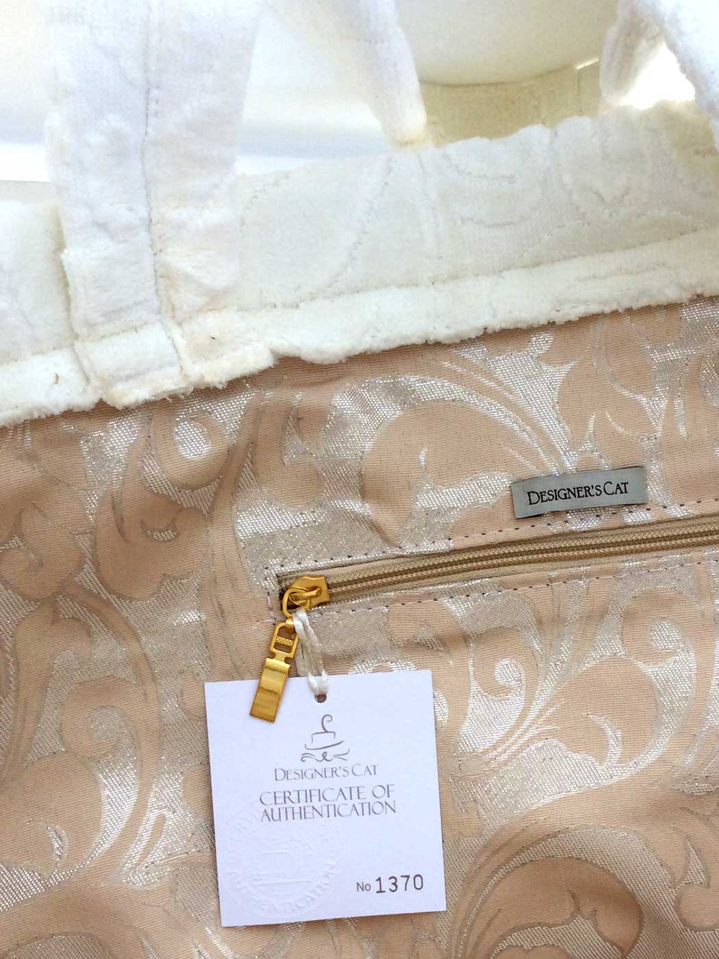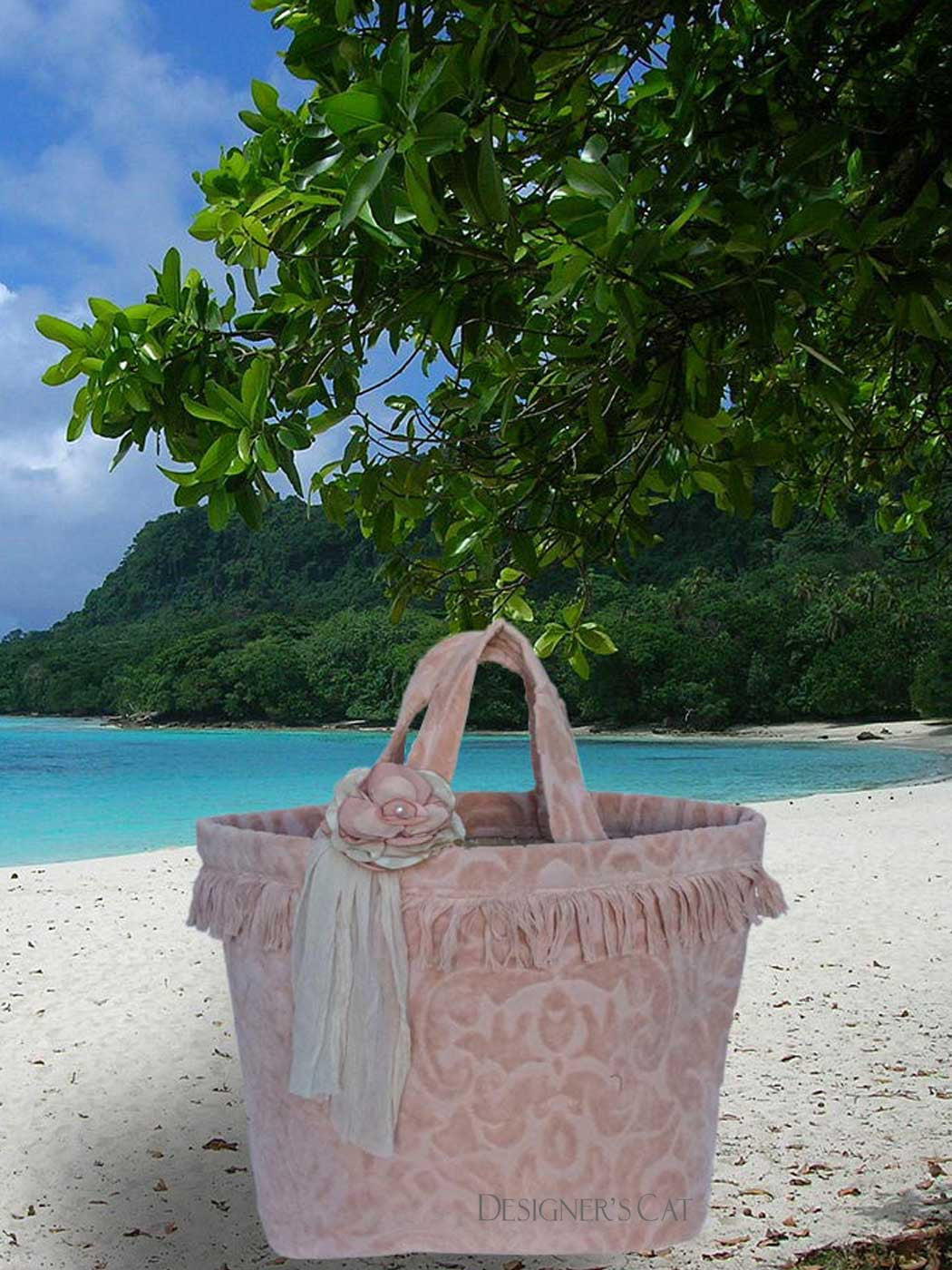Handmade cotton velvet bag decorated with fringes and silk flowers. Combined with a range of dresses and accessories christening collection of DESIGNERS CAT . It is also a beautiful bag for the beach (The decorative with handmade flowers not included in the product price and sold separately).