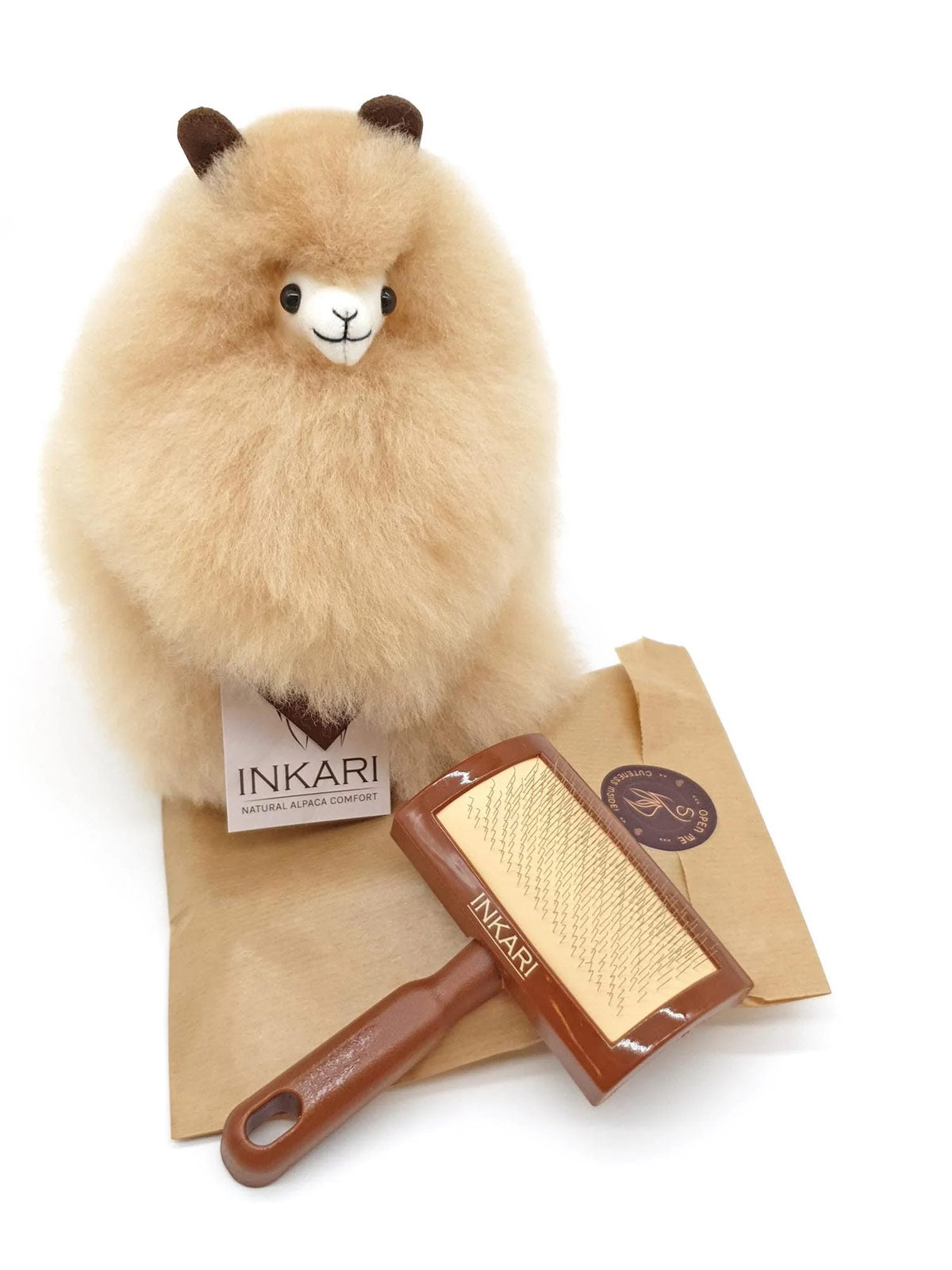 Take care of your alpaca with the grooming brush that features gentle bristles that glide effortlessly through your alpacas' fleece, gently detangling knots and removing imperfections.