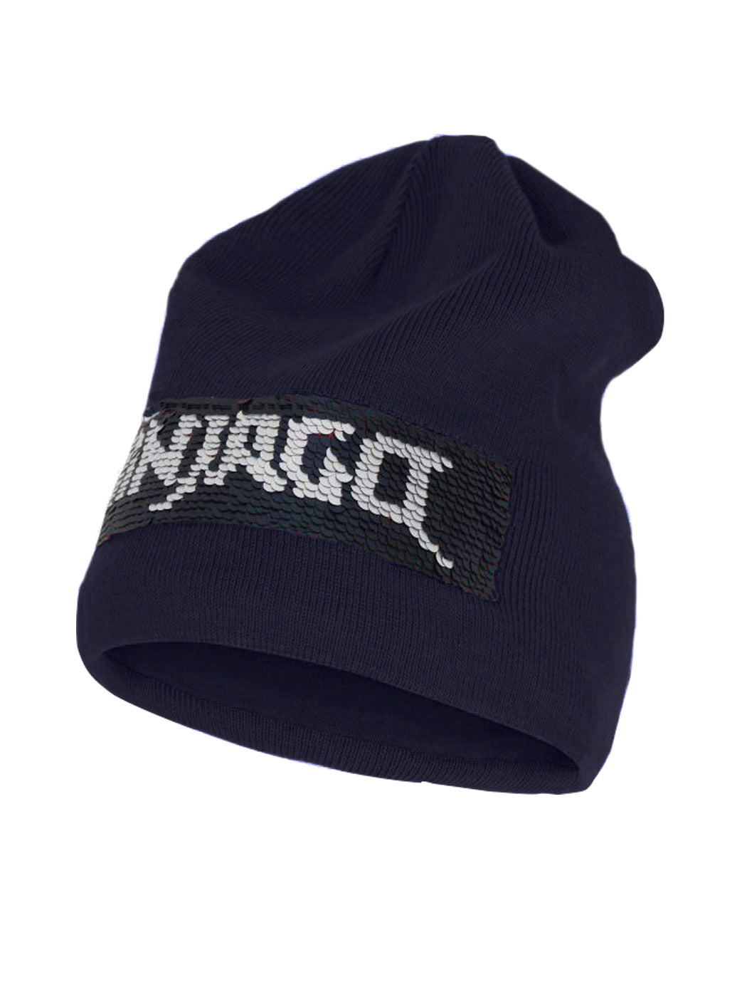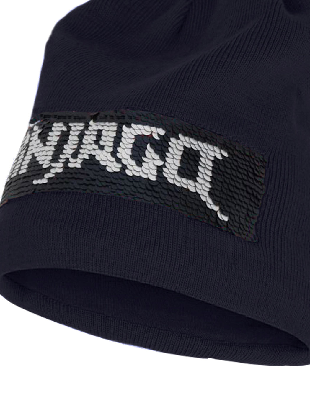 Smart LEGO NINJAGO knitted hat with cool flip sequins. The “NINJAGO” text on the front changes between silver and black, when you strike your hand over the sequins. Iconic reflector badge on the back.