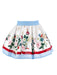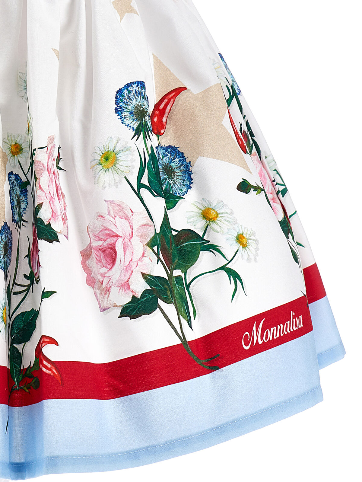 Lovely floral skirt made of poplin fabric with print and elasticated waist in contrasting color with embossed logo. Monnalisa skirt can be combined with jacket or sweater, t-shirt, completely changing the girl's style.
