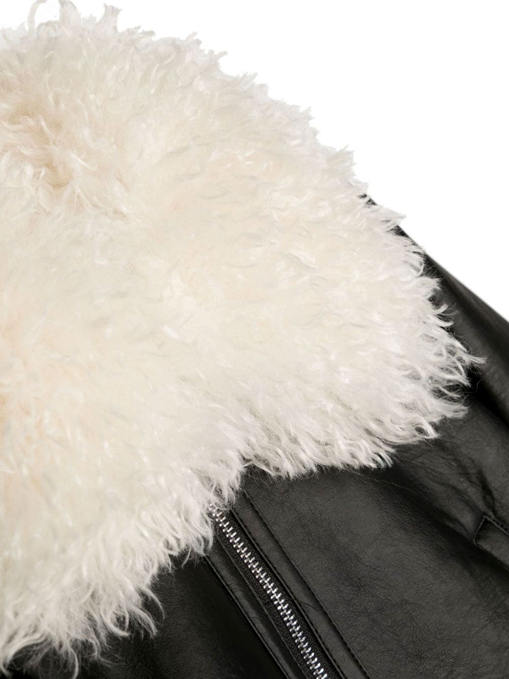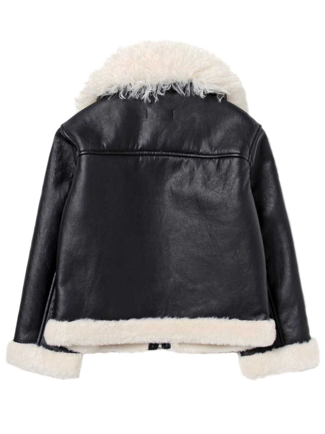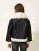 Fashionable leather-like aviator jacket with faux fur collar and inner lining, zip closure, welt pockets. An ideal choice that can be combined with jeans, skirts and many other outfits.