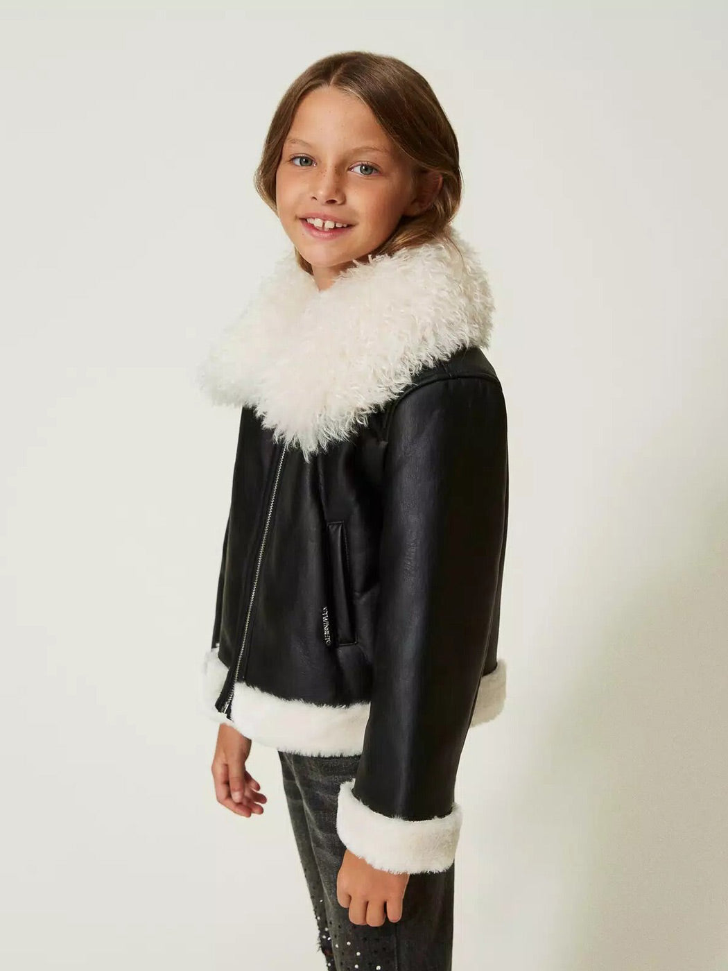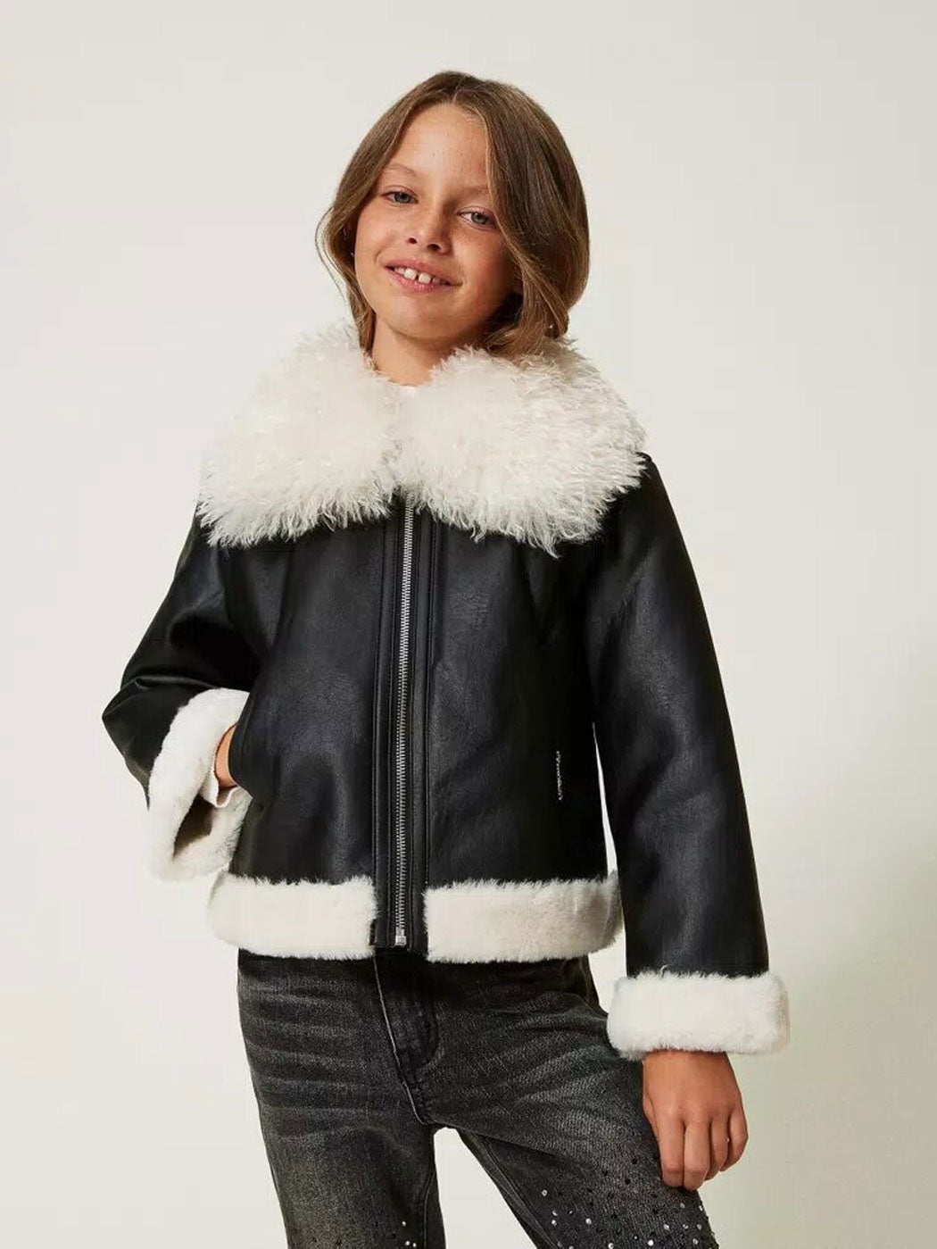 TWINSET Girl's Jacket with faux fur-232GJ2083 black