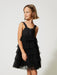 Twinset sophisticated short flounced pleated tulle dress with taffeta bodice, side zip, smocked embroidery on the back.
